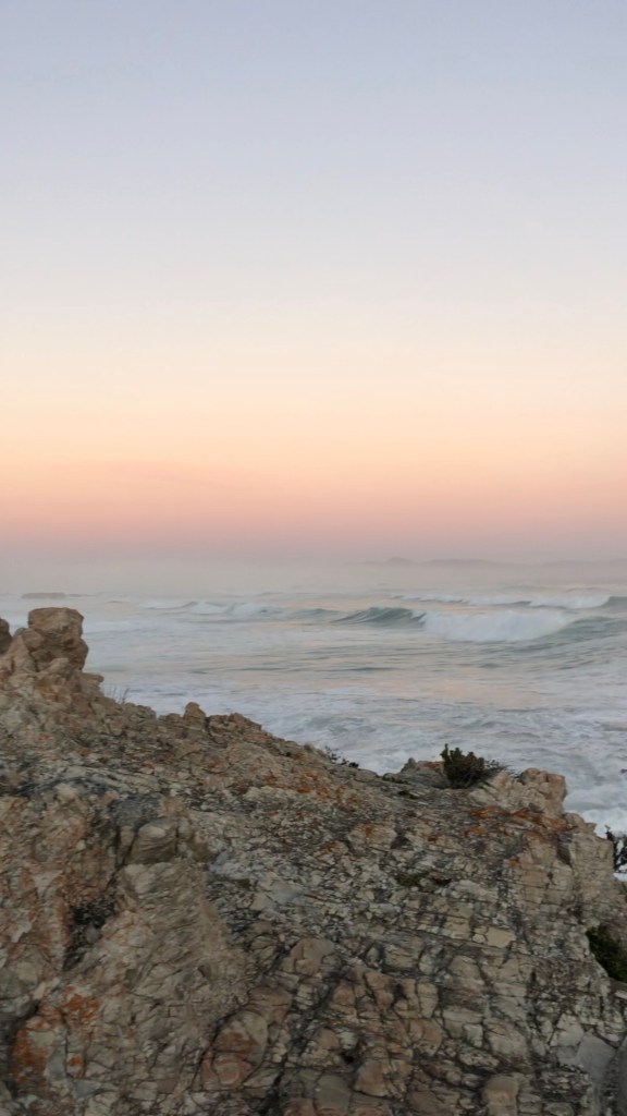 When we first arrived in Hermanus, we decided to go on a cliff walk during sunset. This was a favorite activity on Friday because the sunset and ocean was beautiful, and it was amazing to see such giant waves, which crashed onto the rocks and sprayed us. I find it really peculiar to be in a town where the beach is so important because I usually go to the beach once a year, and it is quite foreign to me. The food here is quite similar to what we have for dinner at home; we had steak, chicken, salad, potatoes, roasted veggies, and a small slice of blueberry cheesecake. Another cultural difference here is that you eat whatever is on your plate. So many times at home I will end a meal with excess food on my plate, which now I see is incredibly wasteful, and I a going to try to stop that habit when I return home. What they do here in SA to keep from wasting food, is take very multiple very small plates and just eat until the are full. Another food I tried was Biltong, which is dried beef, it is similar to beef jerky but less fake. I thought it tasted like prosciutto because of it’s texture and saltiness.